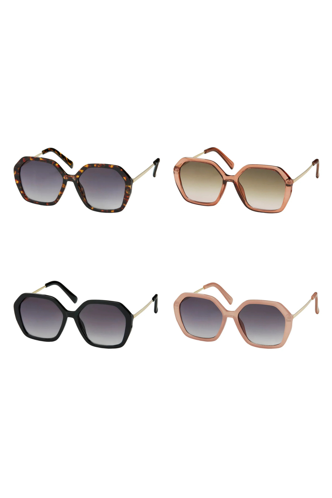 Classic styling meets modern flair with these sunnies. The unique hexagon frames are a timeless and trendy design that will travel with you for years to come. The sunglasses offer 100% UV protection and are created to be both stylish and affordable.